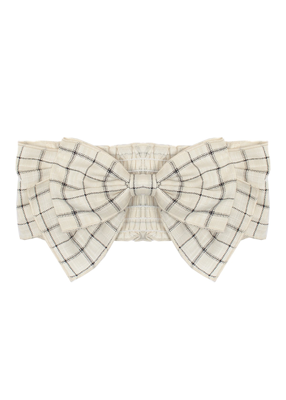 This stylish girl's hair accessory set features a large bow in a classic black and ivory plaid. The soft, breathable fabric ensures a comfortable fit, perfect to wear with its matching romper or dress.