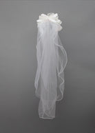 Your little girl's day will look special with this communion-tiered headband veil. This headband is also adjourned with a pearl edge floral detail for that extra touch of cuteness.