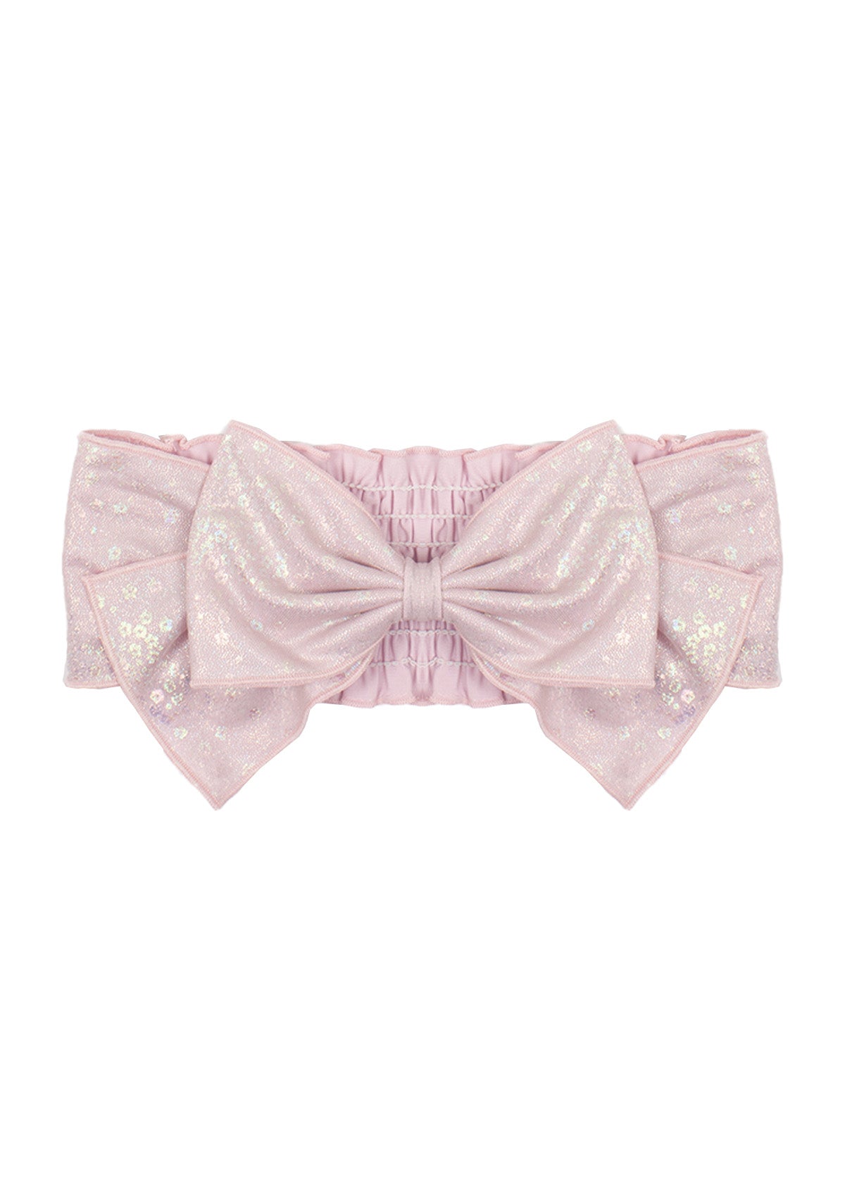 This enchanting hair accessory features a shimmering pink fabric that adds a touch of sparkle to any outfit. The large, beautifully crafted bow is designed to make a statement. The elastic band ensures a secure and comfortable fit, making it perfect for special occasions and everyday wear.