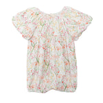 Celebrate the warm season with the Springtime Garden romper, a perfect choice for outdoor play and family photos. This piece is made with a soft breathable knit featuring a botanical print. Detailed with playful bubble sleeves and a gathered waistline, it offers plenty of room for movement, ensuring she stays comfortable while exploring the outdoors.