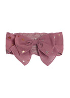 This charming hair accessory features a large bow made from a soft, blush-pink fabric adorned with shimmering metallic stars. The elastic band ensures a comfortable fit, making it perfect for styling with any outfit. The starry design adds a magical touch, making this bow an ideal choice for special occasions or everyday sparkle.