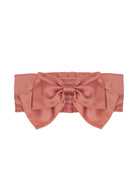 This elegant girl's hair accessory features a large, beautifully crafted bow in a soft, peachy-pink hue. The bow is made from a smooth, satin-like fabric that adds a touch of sophistication to any outfit.