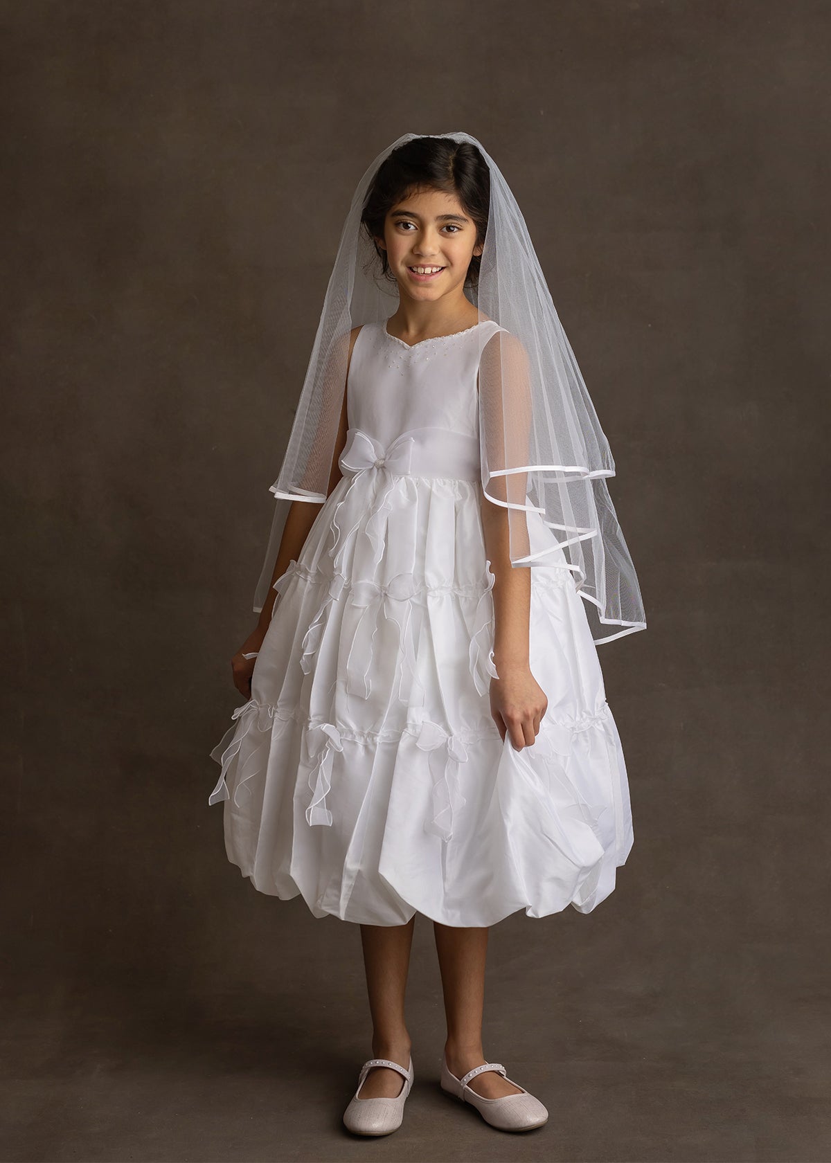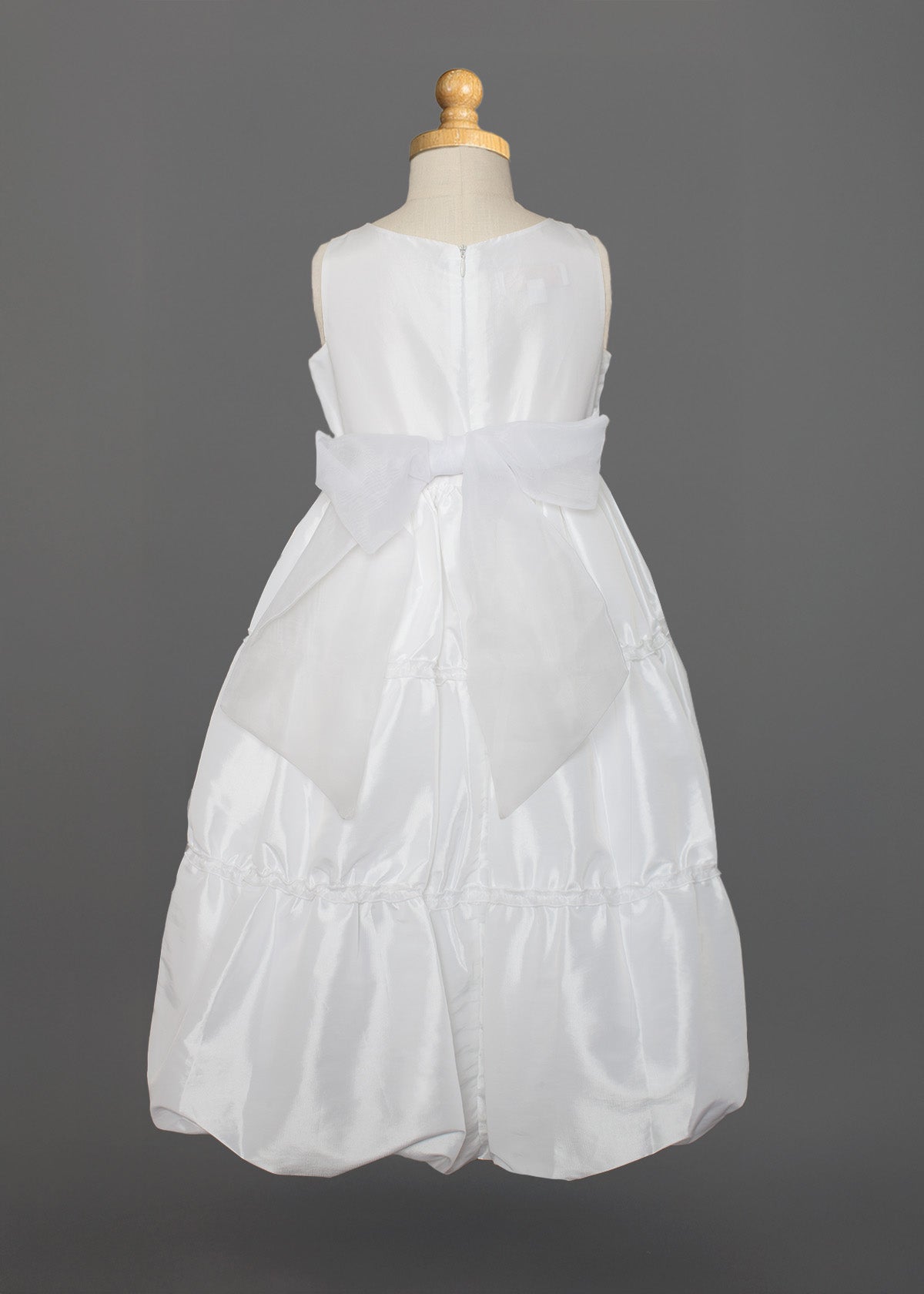 Taffeta Communion Dress w/ Organza Bow & Hand Beading Detail