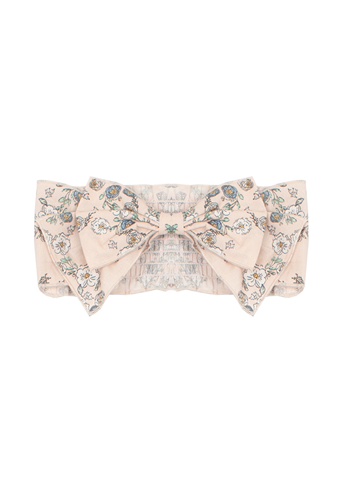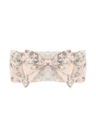 This baby girls' headband features a soft blush hue with a delicate vintage-inspired print. The wide, elasticized band ensures a comfortable and secure fit, while the oversized bow adds a stylish touch. Crafted from lightweight fabric, it offers breathability and flexibility, making it a perfect accessory for everyday wear.